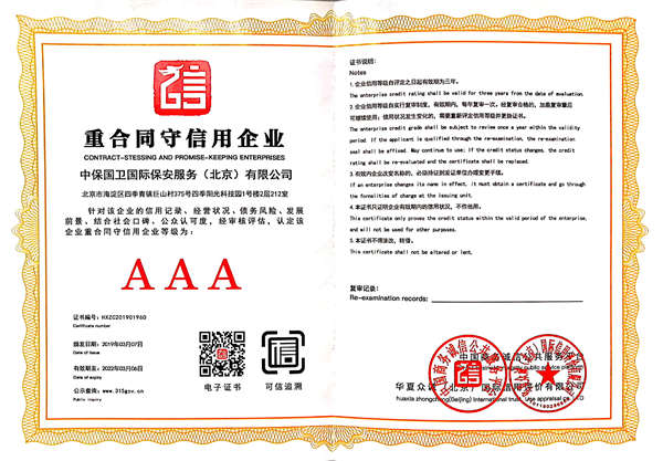 中保國(guó)衛(wèi)國(guó)際保安服務(wù)(北京)有限公司,屬中保國(guó)衛(wèi)集團(tuán)旗下子公司。能全方位的為大型客戶(hù)提供優(yōu)質(zhì)的安保、押運(yùn)服務(wù),是集人防和技防于一體的新型正規(guī)化綜合安保押運(yùn)服務(wù)企業(yè),提供人防、物防、技防、聯(lián)網(wǎng)報(bào)*、非武裝押運(yùn)等安防相關(guān)的一站式服務(wù)。 公司在國(guó)內(nèi)多省設(shè)立有分公司及分支機(jī)構(gòu),著重提升安全押運(yùn)、智能技術(shù)押運(yùn)及安全技術(shù)防范相關(guān)的服務(wù),業(yè)務(wù)范圍覆蓋全國(guó)一、二線(xiàn)城市、港澳地區(qū)以及海外地區(qū)。安保方面主要為政府機(jī)構(gòu)、金融機(jī)構(gòu)、企事業(yè)單位、醫(yī)療衛(wèi)生、高等院校、工業(yè)園區(qū)、大型商場(chǎng)、高檔住宅、智能商務(wù)樓、大型活動(dòng)提供門(mén)衛(wèi)、守護(hù)、巡邏、押運(yùn)(非武裝)、安全檢查、保安特勤、私人護(hù)衛(wèi)、消防中控、安全技術(shù)防范、遠(yuǎn)洋護(hù)航等全方位服務(wù),同時(shí)面向國(guó)際市場(chǎng),為中資企業(yè)在“一帶一路”沿線(xiàn)國(guó)家投資提供境外安保服務(wù)。 >> 更多內(nèi)容 |